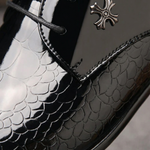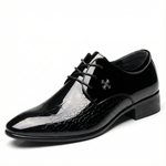 Command attention with these striking Derby shoes that blend contemporary edge with timeless sophistication. The distinctive textured pattern on the toe area adds visual intrigue and sets you apart from conventional footwear, whilst the sleek pointed toe creates an elongated, refined silhouette. The polished finish catches the light beautifully, and the traditional lace-up closure ensures a secure, customisable fit throughout the day. The subtle metal emblem adds a distinguished finishing touch. These versatile shoes transition seamlessly from formal business settings to evening occasions. Ideal for weddings, corporate events, smart dinners, or any moment where you wish to make a lasting impression with understated confidence.
