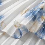 This women’s maxi dress features a flowing pleated skirt and a soft printed design, offering an elegant option for summer events and special occasions. The long silhouette is finished with discreet side pockets, combining refined style with everyday practicality.